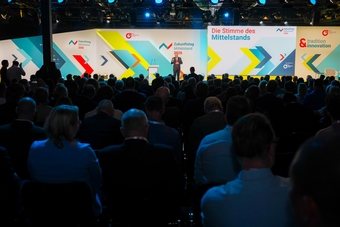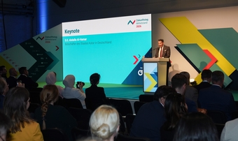 They were joined on stage by Dr. Markus Söder (Minister-President of Bavaria), Bärbel Bas (Federal Minister of Labour and Social Affairs), Dr. Karsten Wildberger (Federal Minister for Digital Transformation and Government Modernisation), Serap Güler (Minister of State at the Federal Foreign Office), Johann Saathoff (Parliamentary State Secretary for Economic Cooperation and Development), Thorsten Schäfer-Gümbel (Chair of the Board, GIZ), Brigadier General Matthias Jozwiak (Deputy Chief of Staff Support, Bundeswehr Operational Command), Otto Fricke (CEO, German Olympic Sports Confederation), Dr. Christian Forwick and Dr. Matthias Koehler (Federal Ministry for Economic Affairs and Energy), and Johannes Volkmann (Member of the German Bundestag) — as well as senior executives from Deutsche Telekom, BMW Group, and Lufthansa Group.