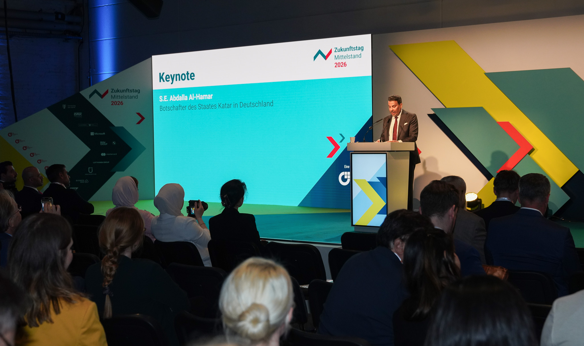 As special guests of The German Mittelstand, H.E. Abdalla Al-Hamar, Ambassador of the State of Qatar to Germany, and Abdulaziz Al-Mikhlafi, Secretary General of Ghorfa Arab-German Chamber of Commerce and Industry, delivered keynote addresses on the Global Stage to an audience of 200 — underscoring the growing momentum of Qatar-Germany economic relations.
