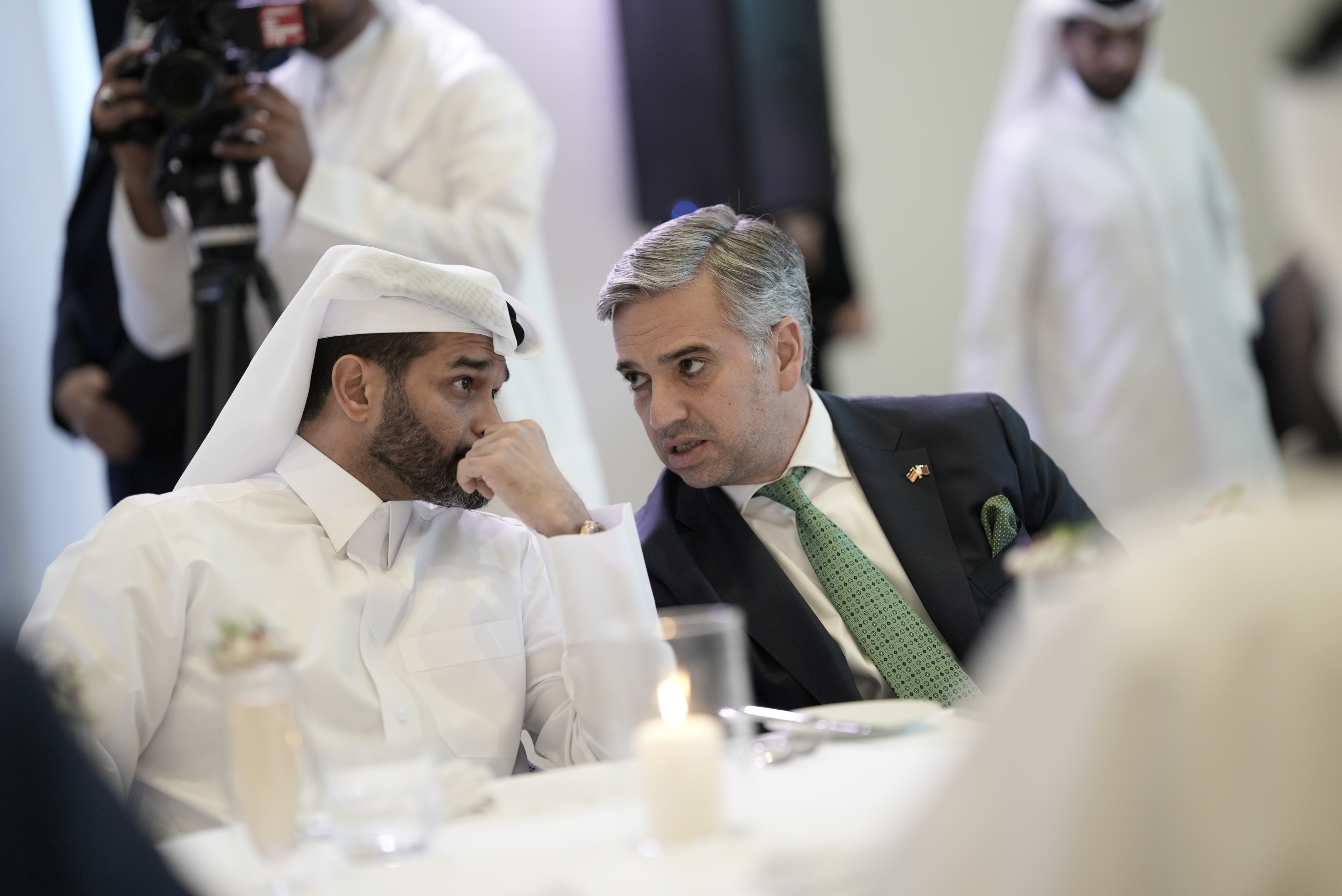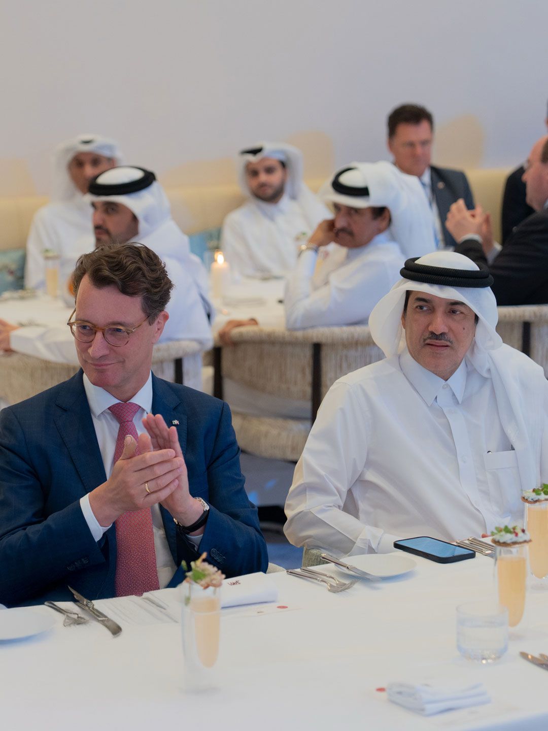 At an official dinner hosted by His Excellency Mr. Saad bin Ali Al Kharji, Chairman of Qatar Tourism, at Sanad Doha – Msheireb Downtown, high-ranking dignitaries gathered to honour the visiting delegation from Düsseldorf. Among the distinguished guests were His Excellency Mr. Hendrik Wüst, Minister-President of the State of North Rhine-Westphalia, and His Excellency Dr. Ahmad Al-Sayed (PhD), Minister of State for Foreign Trade Affairs at the Ministry of Commerce and Industry.